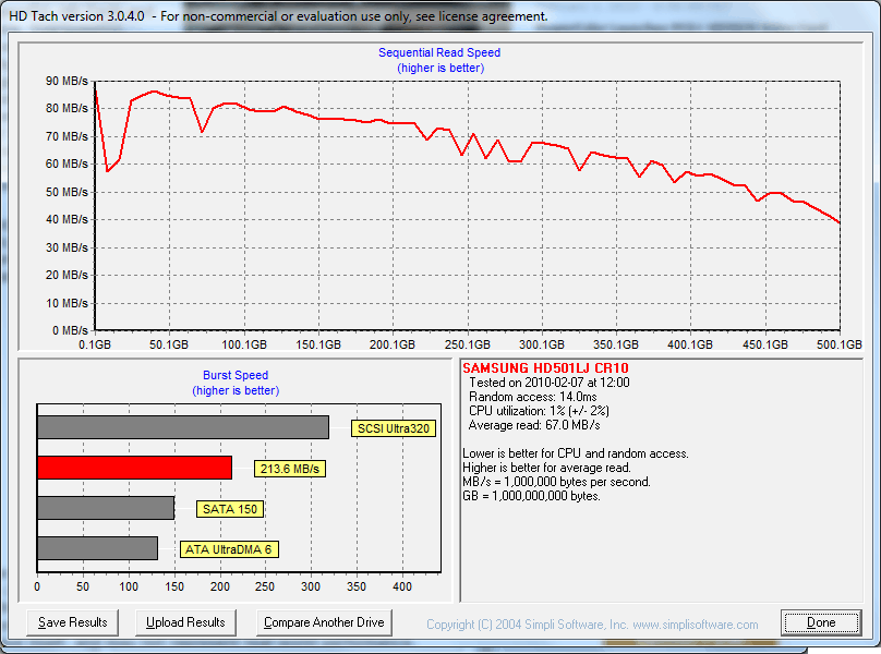 500GB HD501LJ Burst |   213.6 |