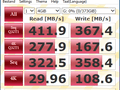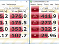 Ik heb de SSD momenteel opgedeeld in twee partities, hier had ik even moeite mee omdat mijn Diskmanagement continu deed crashen tijdens het maken van de partities. (why?) Ik heb beide partities laten benchmarken en kwam uiteindelijk op de volgende snelheden uit: