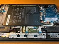 Na het openen valt op dat alle poorten en de accu te vervangen zijn. Helaas kun je het werkgeheugen niet upgraden, daarnaast kan de opslag ook niet vergroot worden d.m.v. een M.2 SSD (de opslag zit gesoldeerd op het moederbord).