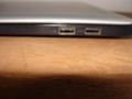 Aan de rechterkant van de laptop zijn twee USB-poorten (2.0) zichtbaar. Dit zijn de enige aansluitingen aan deze kant.