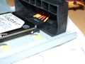 Het klinkt wat rommelig en dat is het ook. De 3.5"-disks zijn niet echt een probleem, heel handig vast maken is het niet, maar over het algemeen zit je niet continu disks te wisselen in een HTPC. Bij de 2.5"-posities duikt er echter een vrij lastige complicatie op, je kan ze alleen gebruiken als je een rechte "eindaansluiting" voor stroom hebt. De disk zit namelijk "ondersteboven" waardoor de stroomaansluiting pal op een stuk metaal zit geschroefd en er dus bijzonder weinig ruimte voor het wegbuigen van kabels over blijft. Voor zowel de doorgaans vrij stugge stroomkabels als de sata-kabel betekent dat je daar dus alleen met een hele platte variant terecht kan.