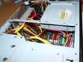 Op zich is er zat ruimte om de voeding en het moederbord te plaatsen, maar je moet daarvoor wel de 3 schroeven van het deksel, de 4 schroeven van de 5.25"-houder, de 4 schroeven van de disks-houder en nog de 2 schroeven van de verstevigingsbalk losmaken. Kortom, he moet er weer ouderwets voor schroeven
