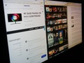 Maar bij zo'n groot beeldscherm, vlak voor je neus, realiseerde ik me al snel dat hoe strak je er ook voor zit, je áltijd naar de randen van het scherm kijkt onder een hoek van 20-40 graden. Vooral naar de uiterste hoeken in de onderrand levert dat duidelijke verschuivingen in het kleurenpalet op. De iconen in de taakbalk worden flets en lelijk. Het enige wat je daar tegen kan doen is je stoel naar achteren te zetten. Maar dat leidt tot ergonomische problemen en ik elk geval tot verlies aan effectieve resolutie omdat je verder van de 8 miljoen pixels verwijderd bent.