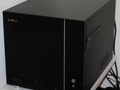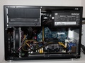 De kast is gekozen vanwege het supergave uiterlijk. Een jaar geleden was er nog onvoldoende keus in mini-itx voor "normale" processors, externe grafische kaart en dergelijke. Het moest dus wel Micro-ATX worden. De meeste kasten zijn nog steeds lomp hoog en diep, maar dit model is heel slim ingedeeld, met het moederbord plat op de bodem en de overige componenten hangend erboven.