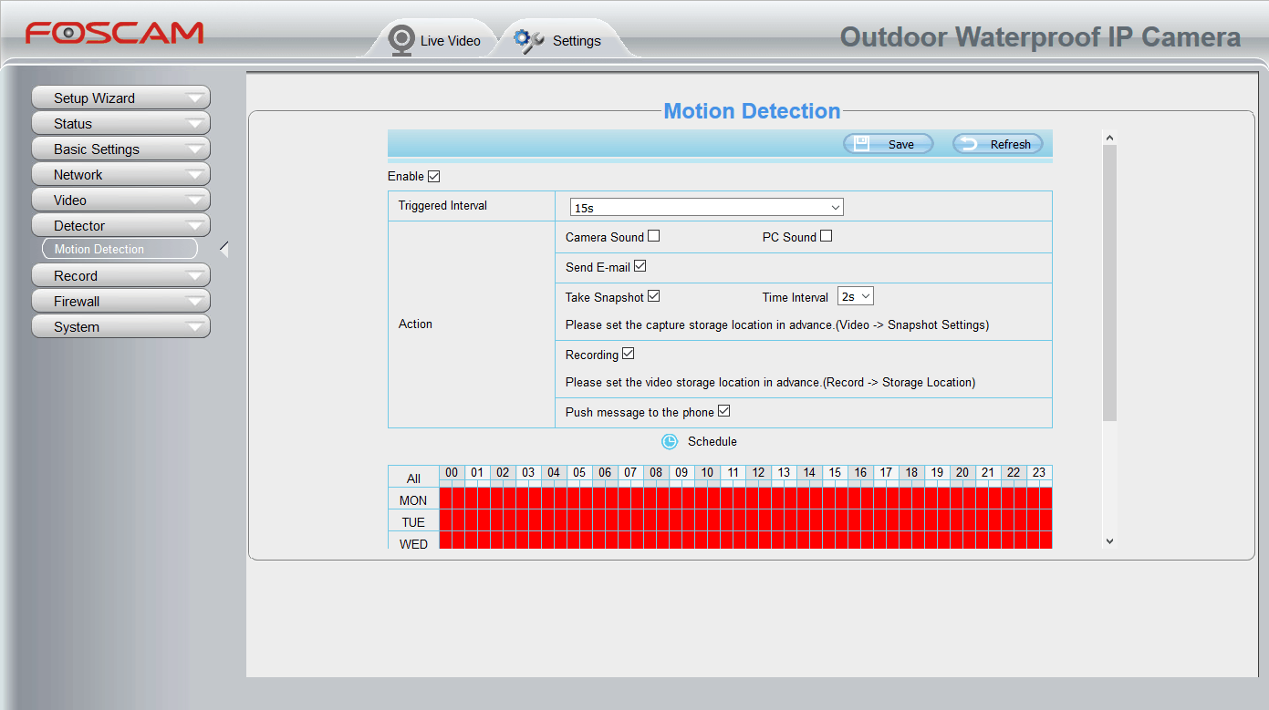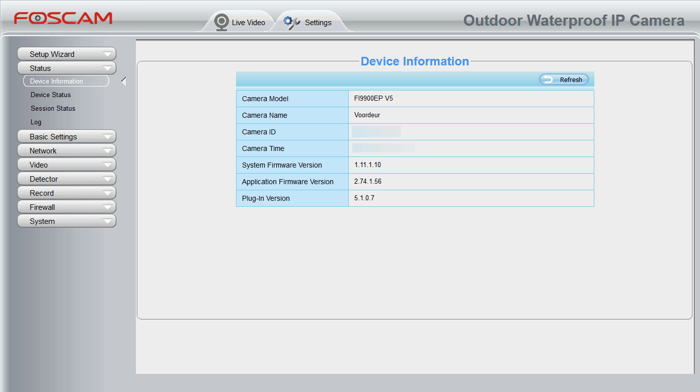 De webinterface voelt een beetje gedateerd aan, maar doet wel zijn ding. De interface laat je toe om allerhande zaken voor de camera in te stellen: