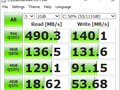 De read speed is prima met bijna 500 mb/sec. En deze snelheid is behaald terwijl de schijf al voor 50% vol zit. Hij zal vast wel wat sneller zijn als de schijf nog verder leeg is.