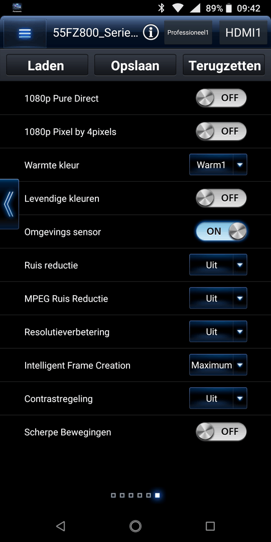 Afhankelijk van bepaalde instellingen vallen andere instellingen weg, wanneer je bijvoorbeeld "1080p Pure Direct" aanzet kun je de "Intelligent Frame Creation" niet meer aanpassen, net zoals in het TV menu.