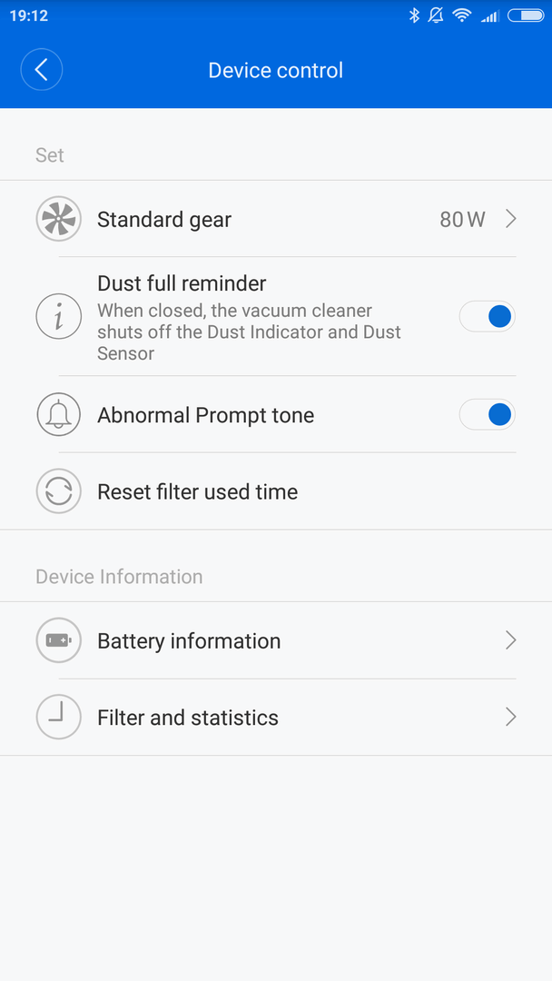 De connectie wordt via bluetooth gemaakt en niet via wifi. Heb je een succesvolle connectie tussen je smartphone en de Roidmi F8 stofzuiger, dan brandt er een blauw lichtje.
