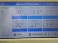 Gevolg is dat bij warmtevraag, maximaal een uur van te voren de ketel wordt aangestuurd én een icoontje van een opgaande grafiek zichtbaar wordt bij die ruimte. Het afschalen van de temperatuur begint ook eerder dan het wegvallen van de warmtevraag volgens het ingestelde programma en wordt met een icoontje met een euro teken aangegeven (foto 9). Hiermee is meteen invulling gegeven aan de vraag: “hoe kan ik zien welke zone warmte vraagt op het hoofdscherm?” Ook hierbij weer een zeer informatief filmpje van Honeywell: