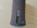 Achteraan heb je nog een kleine zone waar de powerknop en de synchronisatie knop voor bluetooth bevindt. De stof rond de speaker sluit mooi rond dit gedeelte aan.