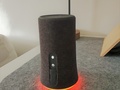De Soundcore Flare is zeker een van de mooiere Bluetooth-luidsprekers op dit moment. Het is een gladde cilinder die geleidelijk iets breder wordt onderaan. De LED-ring rond de onderkant voegt precies genoeg kleur toe aan de grijze stof en is 360° rond de luidspreker omwikkelt.