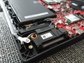 Zodra je de onderzijde van de laptop aftrekt wordt gelijk duidelijk hoe veel kracht in deze laptop gekoeld moet worden. Ook ben ik benieuwd waarom deze SSD fout is. Maar zien we ook gelijk wat we allemaal kunnen upgraden