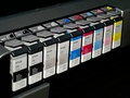 Ik bezit deze printer ondertussen al meer dan anderhalf jaar en na een jaar intensief printen, waren de patronen leeg. Let op: ondanks de hoge prijs, is de printer geladen met een behoorlijk hoeveelheid inkt., waardoor de printer in principe zelfs goedkoper is dan bijvoorbeeld de Epson R2880. Nu komt het duiveltje uit de doos: de inktpatronen zijn schrikbarend duur, echter de helft minder (omgerekend in prijs/ml) dan die van de Epson R2400/R2880. Maar toch: 9x50 euro en dan de afvaltank die ondertussen vol is door tussentijdse reiniging van de printkop en dan kom je toch snel uit op een kleine 500 euro (slik !).