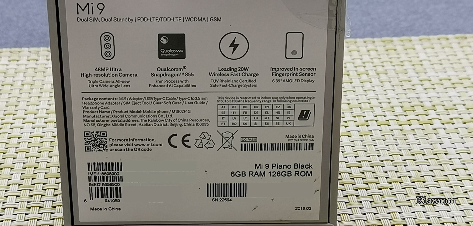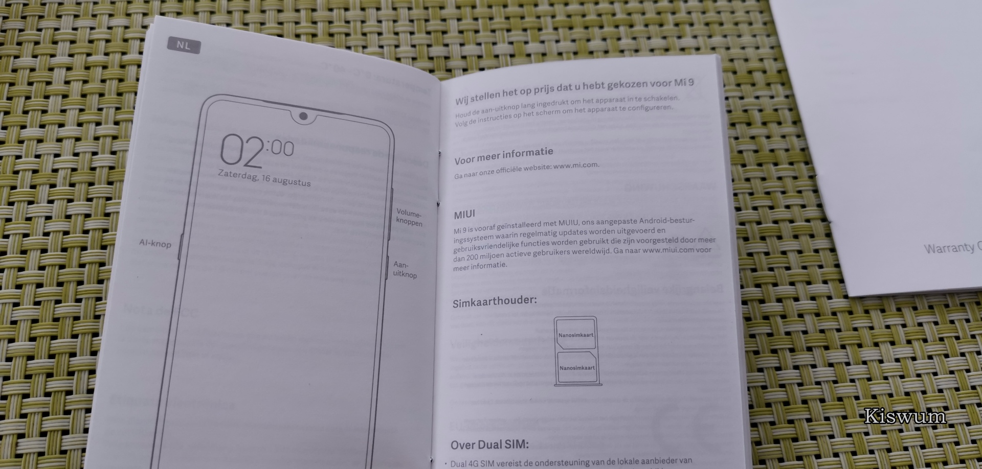 Op de zilveren doos is een grote zilveren 9 aangebracht. Aan de zijkant van de doos is een oranje sticker te zien waarbij je kunt opmaken dat je hier te maken hebt met een Global versie van een Xiaomi product. Andere aanwijzingen waarbij je kunt zien dat er een Global smartphone voor je ligt, is de Engelstalige beschrijving op de doos, EU stekker + internationale handleiding in de doos.