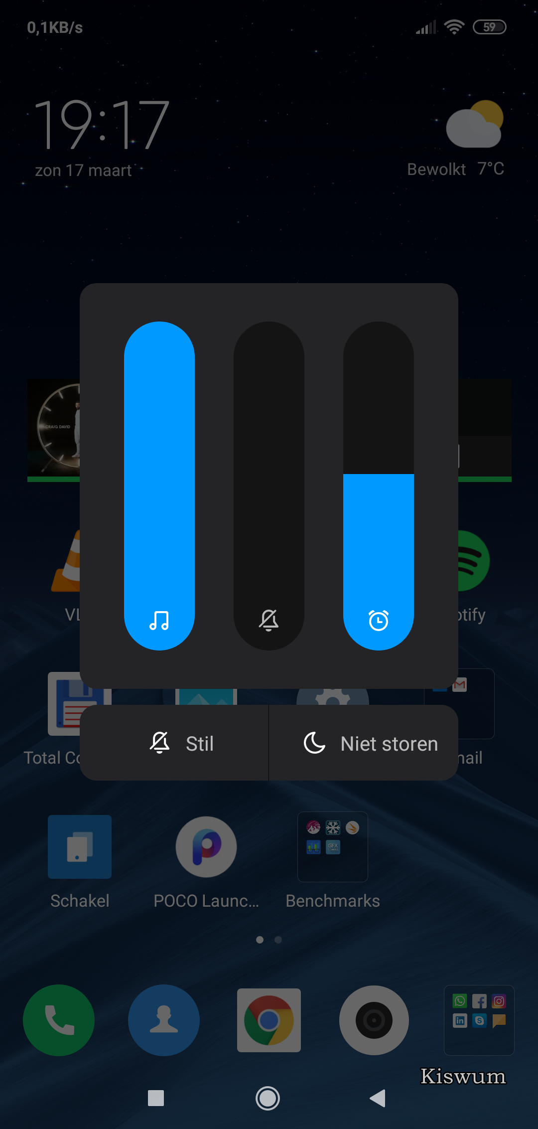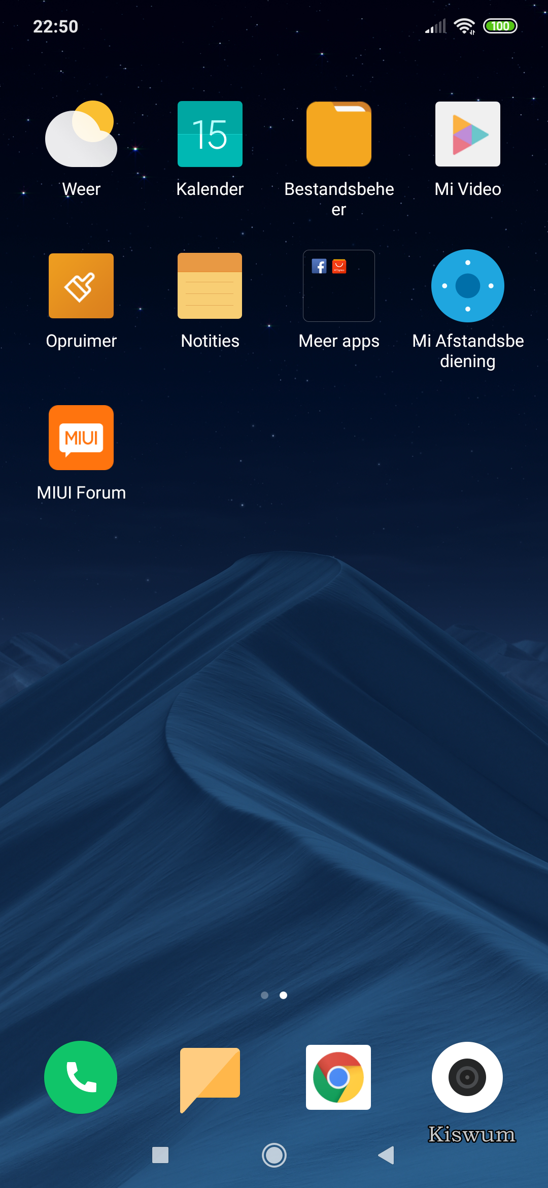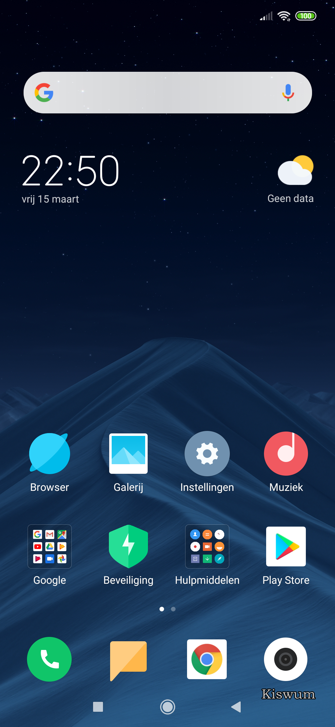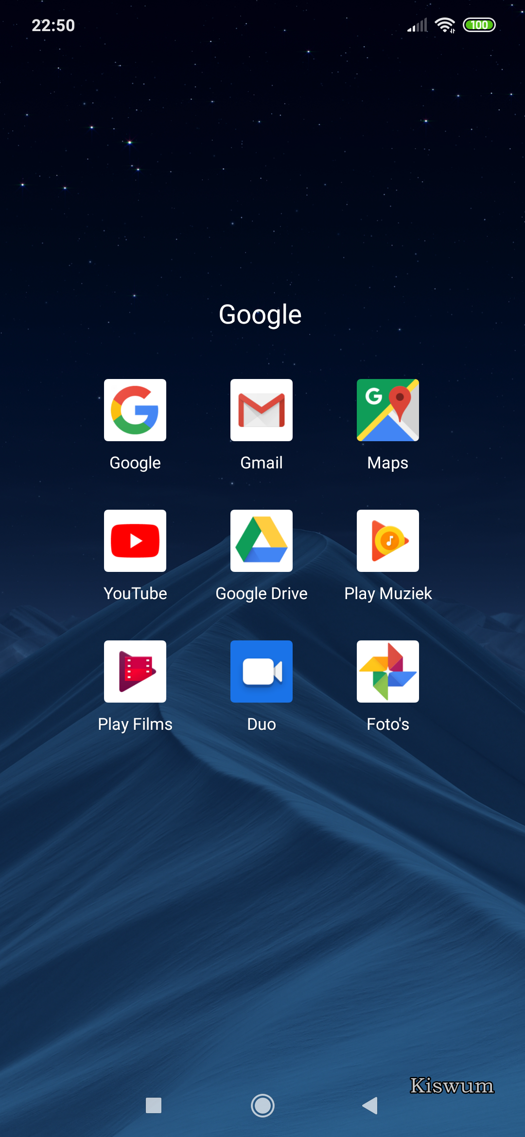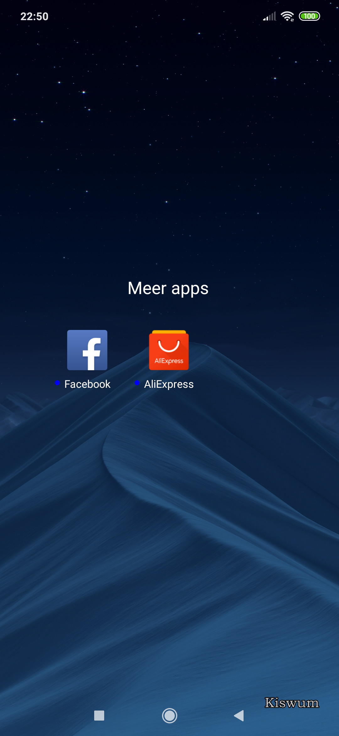 De telefoon is niet voorzien van een appdrawer, met apps achter een hoofdmenu. Alle apps zijn na installatie direct op het hoofdscherm te vinden. Om het hoofdscherm overzichtelijk en netjes te houden kan er gebruik worden gemaakt van widgets en mappen. Zoals je op onderstaande afbeeldingen kunt zien, zijn er geen vreemde apps van derde partijen zichtbaar. Je kunt ook gebruik maken van een launcher, zoals die van Pocophone. Hiermee worden de apps wel achter een menu gezet, zodat je hoofdscherm vrij blijft van een grote diversiteit van apps.