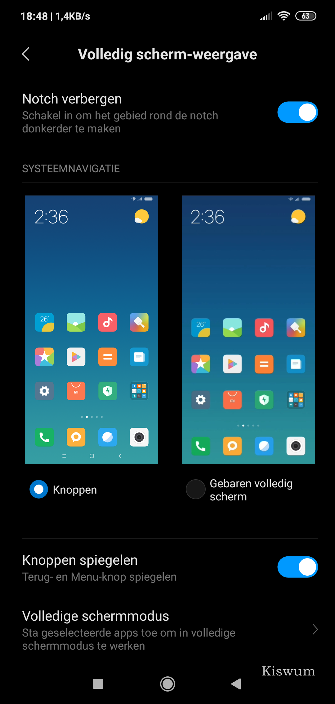 Sinds kort is het bij Miui mogelijk om de knoppen van locatie te laten wisselen of om de knoppen geheel te verwijderen (menu's worden dan via veegbewegingen geopend). Hiermee wordt de overstap van de ene Android, naar deze Android wat eenvoudiger. Net als bij andere flagships smartphones, is de Mi 9 voorzien van een vingerafdrukscanner achter het scherm.