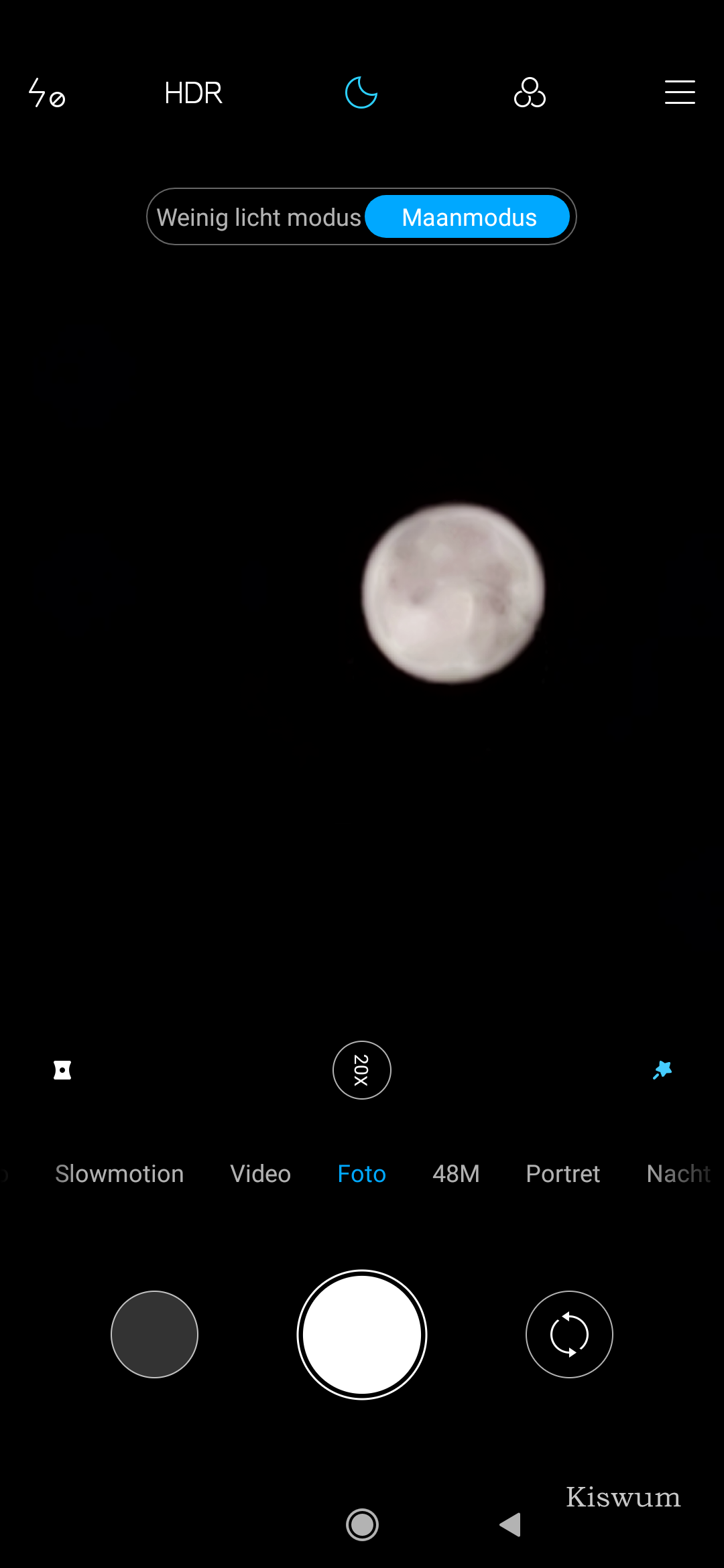 Opties: | Geo-tagging, touch focus, autofocus, automatische HDR, digitale stabilisatie, portret modus, Ai instellingen, maan modus, nachtmodus, QR reader, Google Lens |