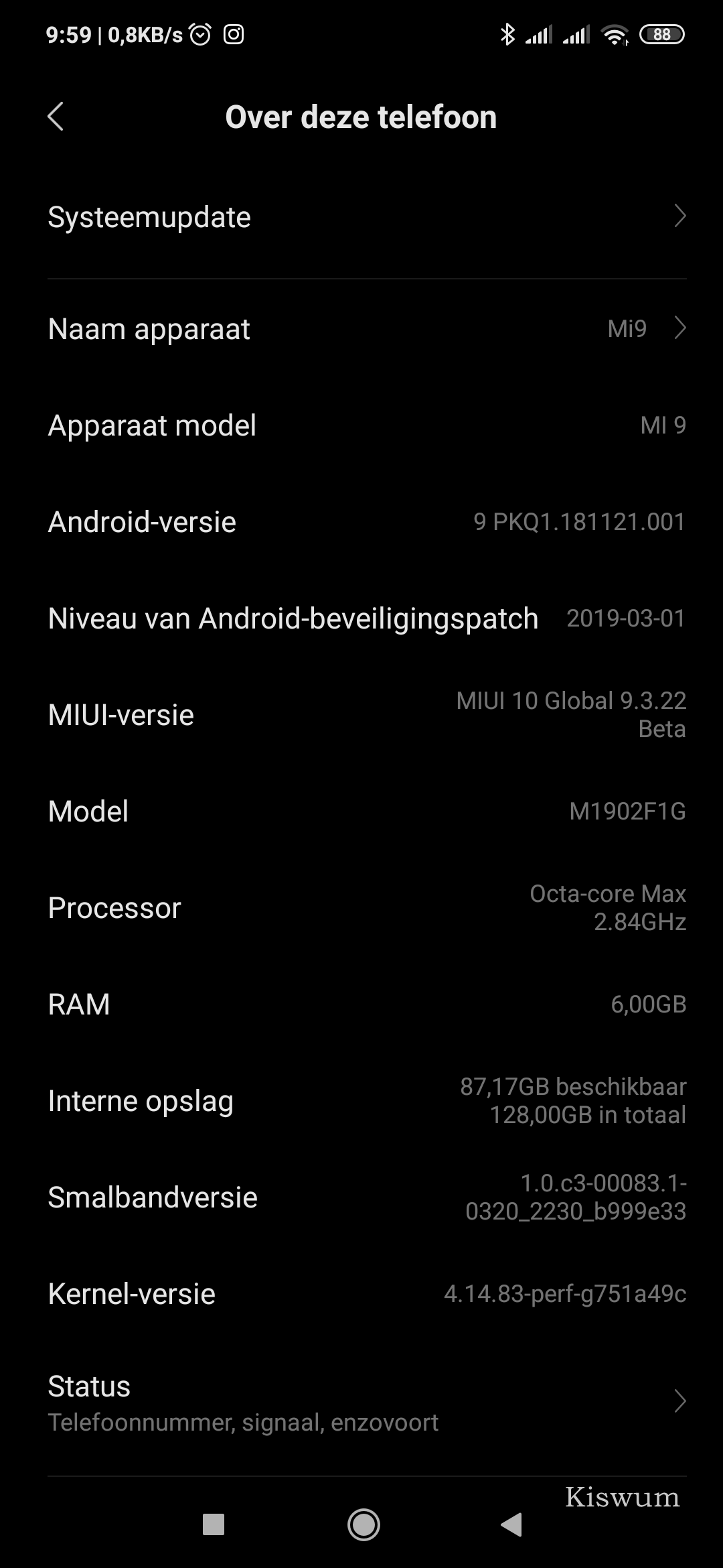 Laatst gebruikte firmware versie: Miui 10 Global 9.3.22