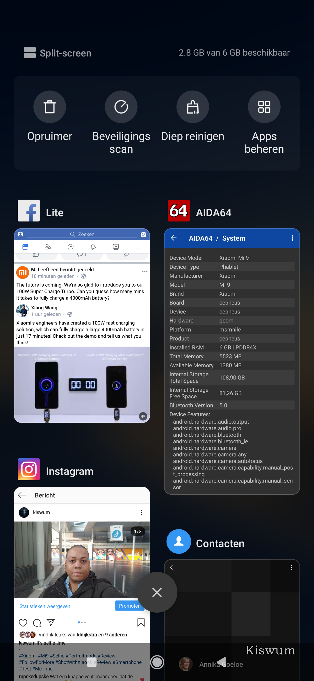 Van de aangegeven 6GB werkgeheugen kan 5,5GB worden gebruikt. Na het wissen van het werkgeheugen, neemt het os met applicaties ongeveer 3GB in beslag. In de praktijk zal je merken dat er 1,5GB - 3GB vrij is aan werkgeheugen en dat zorgt ervoor dat apps niet snel afgesloten hoeven te worden. Standaard staan alle apps op een energiezuinige modus, waardoor ze op de achtergrond kunnen afsluiten. Dit kun je eenvoudig via het systeem aanpassen. Zorg er dus voor dat Social Media niet automatisch wordt afgesloten door Miui.