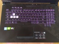 Het toetsenbord typt fijn. Er zit voldoende travel om zonder last van de handen/vingers verslagen of reviews te schijven. De juiste toetsen zijn tijdens blind typen altijd goed te vinden. Dit komt mede door de ruimte tussen toetsen in. Misslagen komen nauwelijks voor. Het toetsenbord is voorzien van de welbekende Asus ROG-ledverlichting. Deze is naar smaak volledig in te stellen. Via verschillende FN-knoppen is de helderheid in 3 standen in de schakelen: hoog, laag en uit. Ook kan je wisselen van modus, hierbij is de keuze: static, breathing strobing, color cycle en rainbow