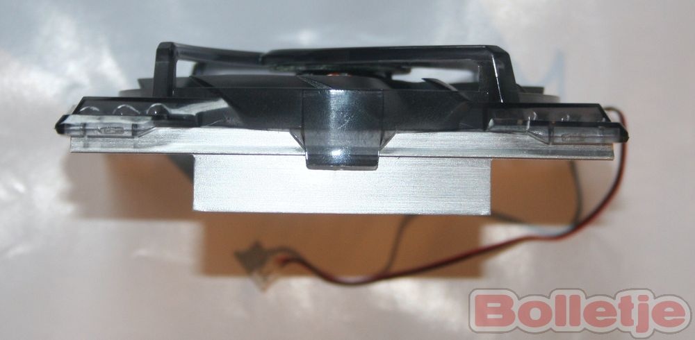 Voor de gein heb ik ook Arctic Cooling S1 Rev.2 geïnstalleerd. Deze koeler is een stuk groter dan de videokaart zelf. Omdat de kaart van nature al erg koel was zat er geen grote prestatiewinst meer in. Hieronder zie je de resultaten