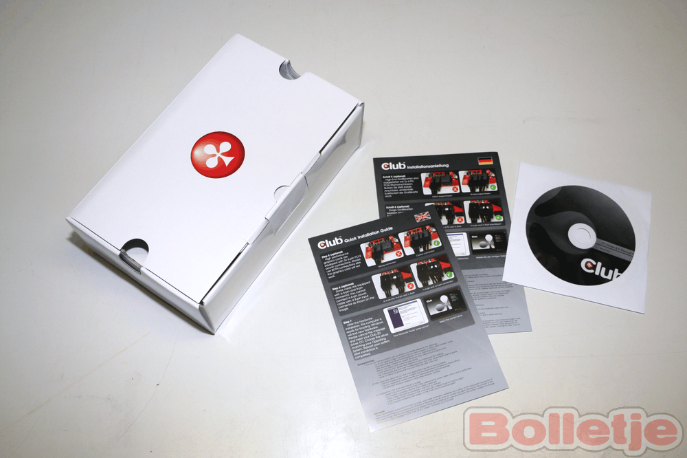 In de zwarte doos zit vervolgens weer een witte doos. We vinden hier twee “Quick Installation Guides”, één Duitse en één Engelse. Niet heel bijzonder dus. Ook vinden we nog een CD met drivers. Dit heb ik allemaal niet nodig, aangezien ik de drivers altijd van de ATI of NVIDIA site afhaal. Je hebt dan namelijk de nieuwste.