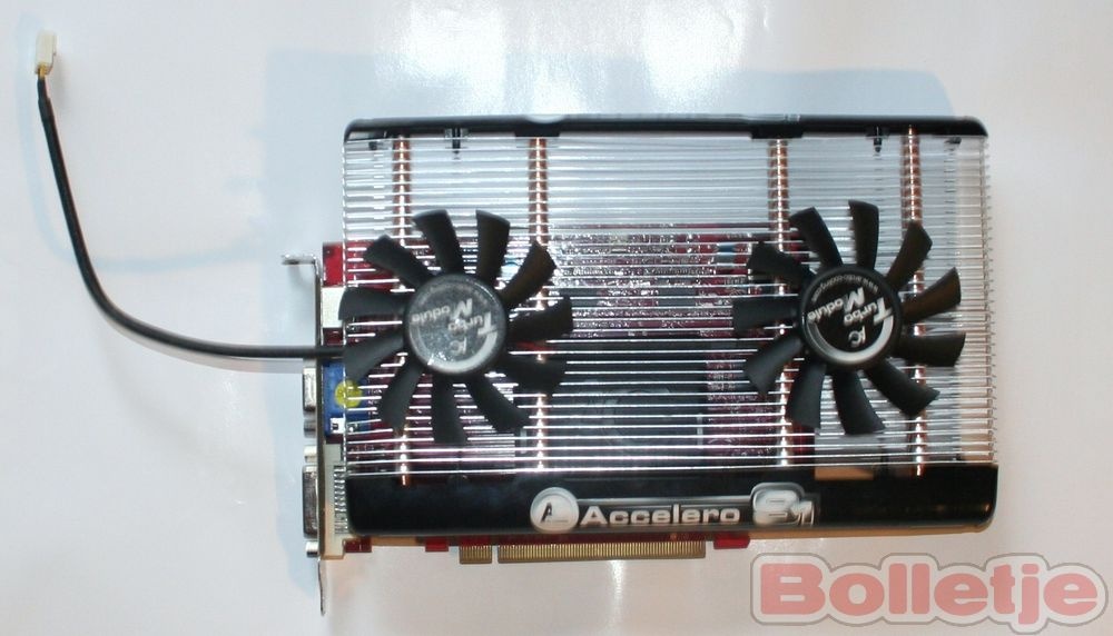 Mocht je de videokaart toch nog te luidruchtig vinden dan kan ik je een Arctic Cooling S2 aanraden. Deze koeler kost omstreeks de 10-12 euro en de videokaart wordt dan passief gekoeld (= helemaal geen geluid van de videokaart). Dit is mogelijk omdat het GDDR3-geheugen niet gekoeld hoeft te worden. Ook de temperaturen blijven dan nog helemaal in orde (S2 is iets kleiner dan de S1, dus de temperatuur ligt dan iets hoger).