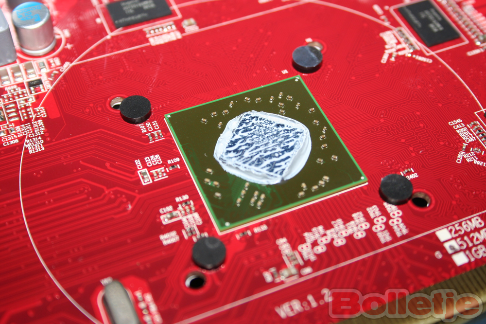 Ook moet je er op letten dat de videokaart al 4 rubberen steuntjes heeft voor de L2-koeler. Je hoeft de plastic ringen van de S1 of S2 dan niet meer te installeren. Je kan dit ook beter niet doen omdat je dan de kans loopt dat de core niet goed wordt geraakt door de heatsink van de koeler.