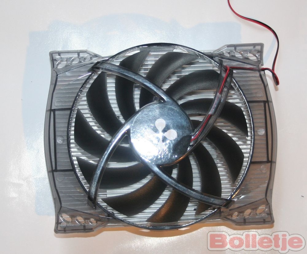De L2 koeler van Arctic Cooling doet goed zo’n werk. De ventilatorsnelheid stond op 38%. Bij de 9600GT was dat 35%.