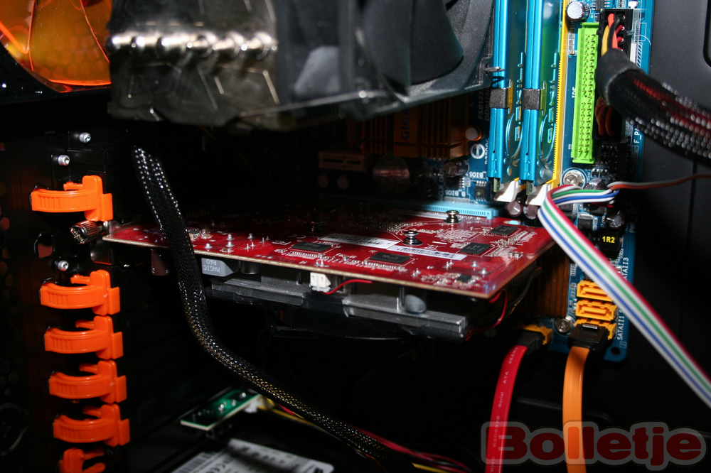 Let er echter op dat de core bij deze kaart erg dicht bij het PCI-e-slot zit. Nu heb ik een moederbord gebruikt waarbij een PCI-e 1x slot net onder de 16x zit. Als je echter een PCI-slot onder je 16x slot hebt zitten dan kan het zijn dat de S1 en S2 niet passen. De onderkant van de koeler komt dan namelijk tegen het slot aan.