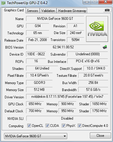 PNY 9600GT OC XLR8, maar we zullen hem voor deze tests underclocken naar de waardes van een normale 9600GT (zie ook de