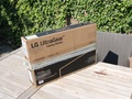 Nadat de koerier het scherm bij me had afgeleverd, heb ik in vol enthousiasme de tape van de doos aan gort gesneden. Daar trof ik de poot en stroomadapter van het scherm. Na nog iets dieper te graven vond ik ook het scherm. Mijn enthousiasme werd echter een beetje getemperd toen ik merkte dat er geen kabels in de doos zaten. Nu zijn mijn andere schermen aangesloten met DVI, en omdat dit scherm ook die aansluiting niet had, had ik hier wel mijn eerste minpuntjes te pakken. Na wat googelen vond ik dat er echter wel een HDMI-kabel in de doos hoort te zitten, maar gezien mijn 77 stickertje nét zo scheef zit als bij de