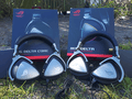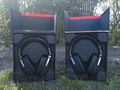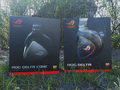 Hieronder treffen we de beestjes aan in het typerende zwart/rode kleurenschema van Asus. Aan de linkerzijde bevindt zich de ROG Delta Core en aan de rechterzijde de ROG Delta. De eerste indruk bij het uitpakken is een positieve, want beide headsets zijn stevig verpakt. De leren afwerking van de hoofdsteun en de oorschelpkussens, op beide headsets nota bene, stralen een luxueus gevoel uit. Op het eerste gezicht is er, op visueel gebied althans, dan ook weinig onderscheid te maken.