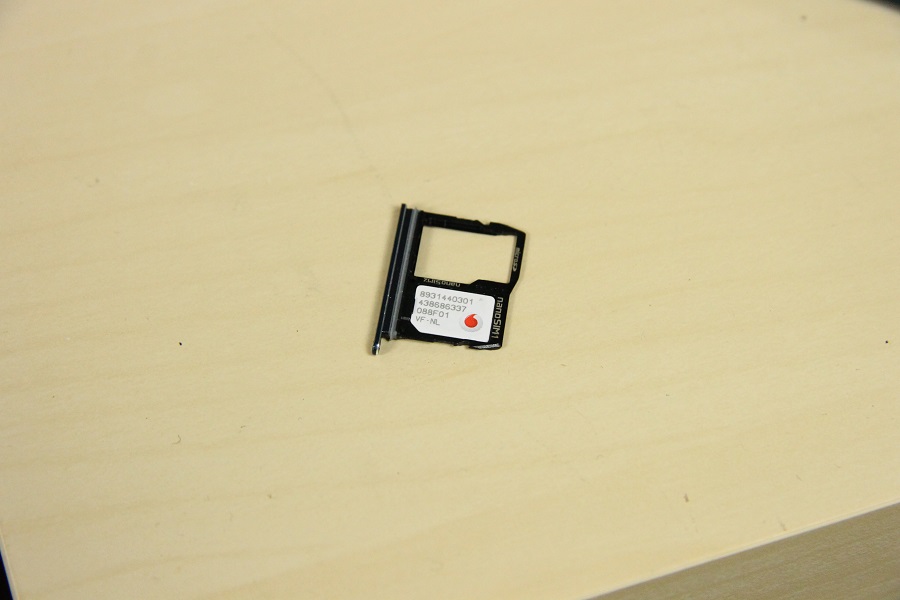 We halen de simtray uit het toestel. Hier is te zien dat er twee simkaarten geplaatst kunnen worden. Dit is iets wat steeds meer terug te vinden is in smartphone land. Wel zo handig als je een zakelijk en een privé nummer wilt gebruiken. Wil je perse extra opslagruimte, dan kan de tweede simkaart niet gebruikt worden. Bij het gebruik van twee kaarten wordt de ene kaart horizontaal geplaatst en de tweede kaart verticaal. Schuif de tray terug en het toestel kan aangezet worden. Je wordt welkom geheten met het logo van LG, om vervolgens door te gaan naar het startscherm met daarop het typenummer.