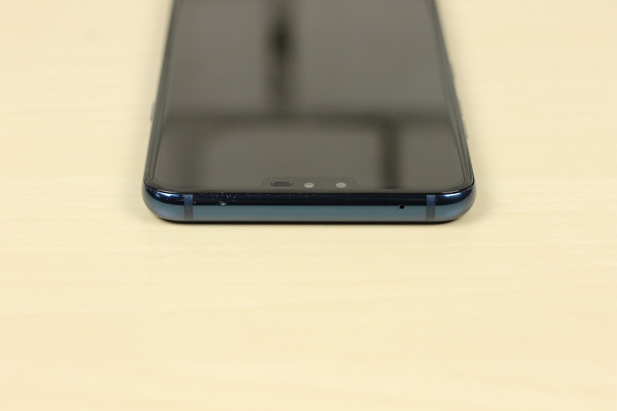 De voorkant van het toestel is vrij standaard zwart uitgevoerd, maar dat zijn eigenlijk alle toestellen die op de markt gezet worden. Wat dat betreft is geen enkel toestel uniek tegenwoordig. Er zijn geen fysieke knoppen te vinden aan de voorkant.Wel zie je, als je goed kijkt, de twee camera's aan de voorkant van het toestel en de speaker zitten.