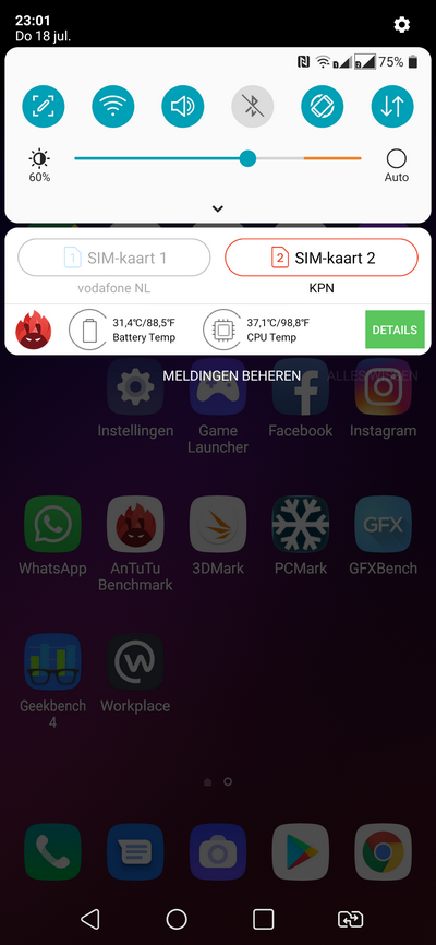 Applicaties draaien nog steeds prima op deze telefoon.Nooit ergens echt een hapering tijdens het gebruik van programma's of het laden van games. Pubg was een uitzondering, maar dat spel is van zichzelf een zwaar spel. Beeldkwaliteit is goed dankzij het OLED scherm. Het Always-On scherm is ook handig, zodat je niet elke keer je telefoon aan hoeft te zetten om te zien hoe laat het is en of je berichten hebt gemist. Qua audio kun je gebruik maken van een 3.5mm hoofdtelefoon aansluiting, iet wat veel telefoons tegenwoordig niet meer hebben. Uiteraard kan er gebeld worden met het toestel en de gesprekken klonken gewoon goed. Je kunt zelfs twee simkaarten plaatsen in het toestel, zodat je niet met een werk en privé toestel hoeft te lopen. Het wisselen tussen de twee kaarten gaat soepel. Maar tijdens het bellen kan het wel eens gebeuren dat je de Google Assist in drukt. Deze zit eigenlijk op de verkeerde plek en had wel ergens anders geplaatst mogen worden.