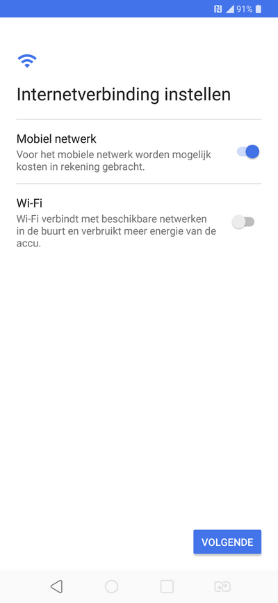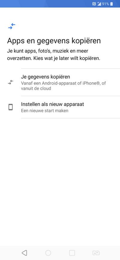 Disclaimer: de setup schermen zijn van Android 8.1. Het toestel heeft later pas de update naar Android 9.0 gekregen dus de schermen kunnen er anders uit zien op jouw toestel.