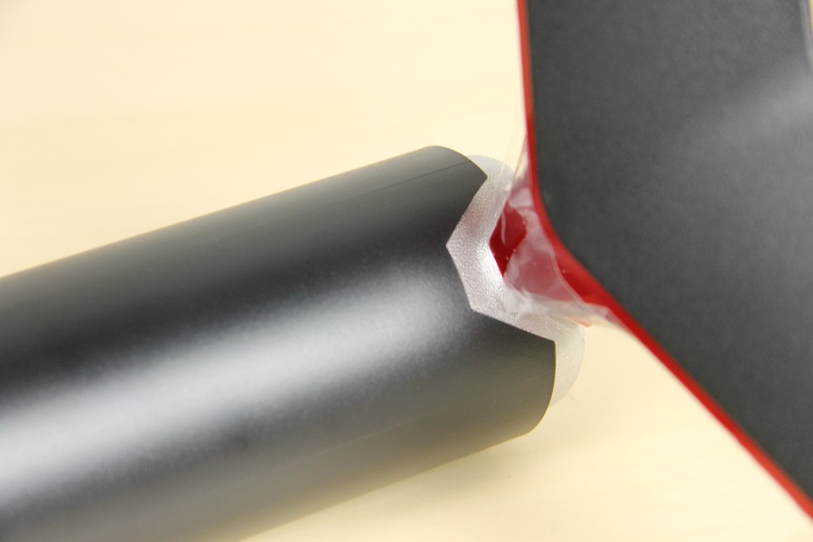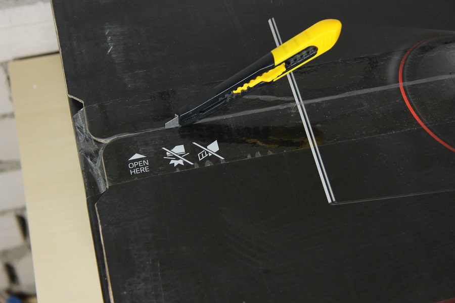 Tijd om de doos er bij te pakken en te kijken wat er allemaal in zit. Op de voorkant van de doos (wat eigenlijk de bovenkant is, maar goed) staan zowel de voorkant als de achterkant van het scherm afgebeeld. Op de achterkant zien we een mooie tekening terug van een imposante zwaardvechter. De zijkant bevat alle hoogtepunten omtrent het scherm. De langere zijkanten bevatten de handvaten waarmee de doos opgetild kan worden. (Zwaar is hij niet).