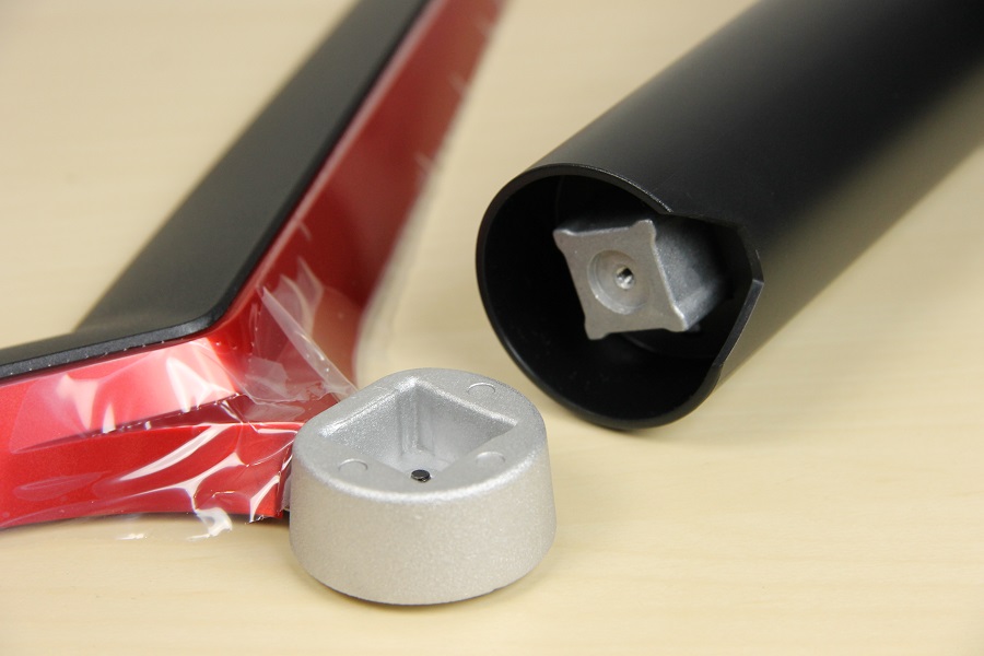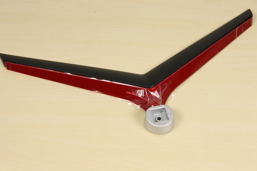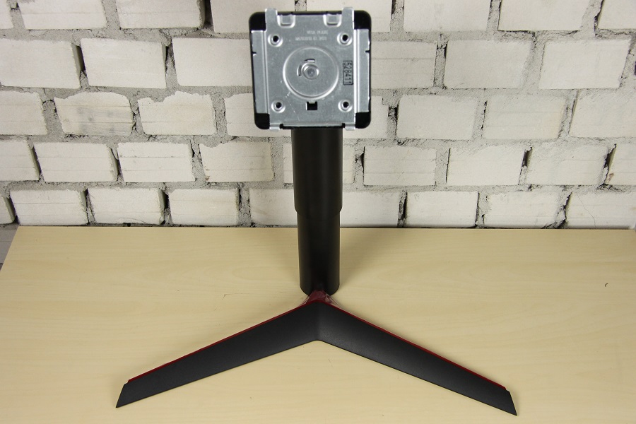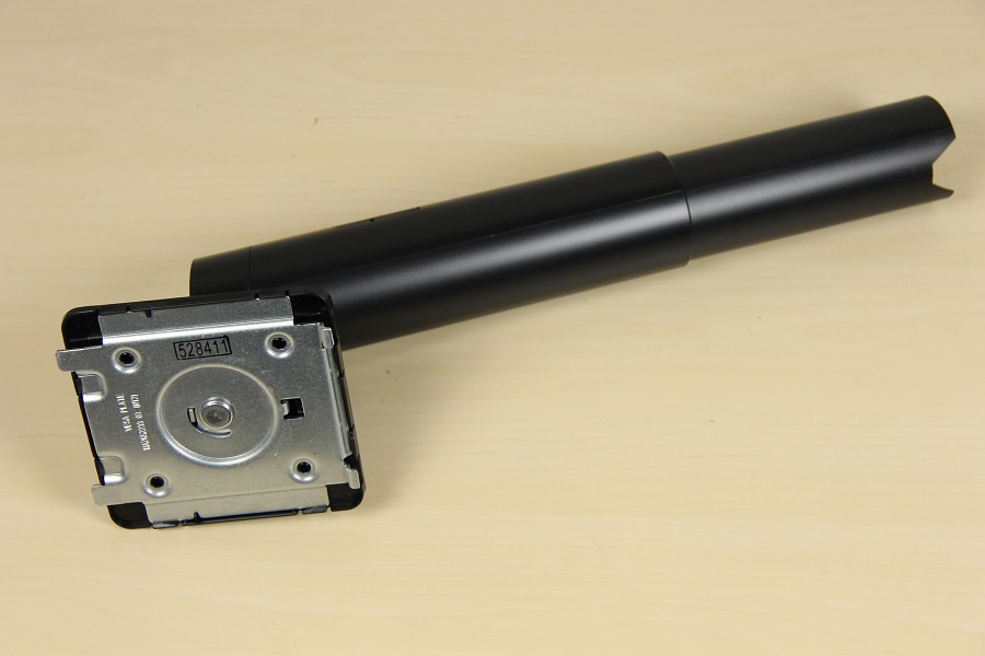 Het is natuurlijk wel handig om het scherm helemaal te monteren als je het wilt gaan gebruiken. Daarvoor moeten de voet en het middenstuk eerst aan elkaar bevestigd worden. Dit gaat gelukkig vrij makkelijk. De voet past maar op één manier op het middenstuk. Deze kan vervolgens vastgezet worden met de schroef aan de onderkant. Hier is niet eens een schroevendraaier voor nodig, aangezien de schroef een hendeltje heeft. De voet is nu klaar en het scherm kan er op gezet worden.