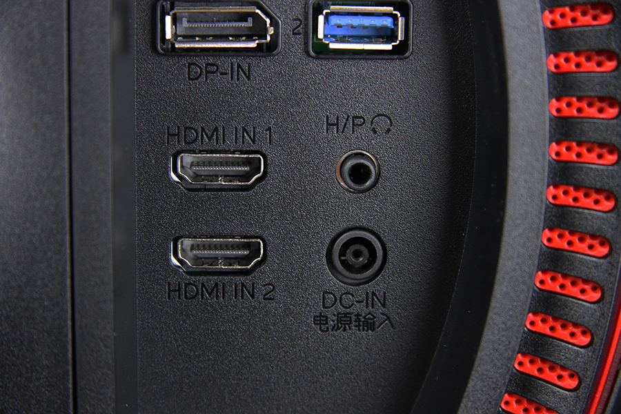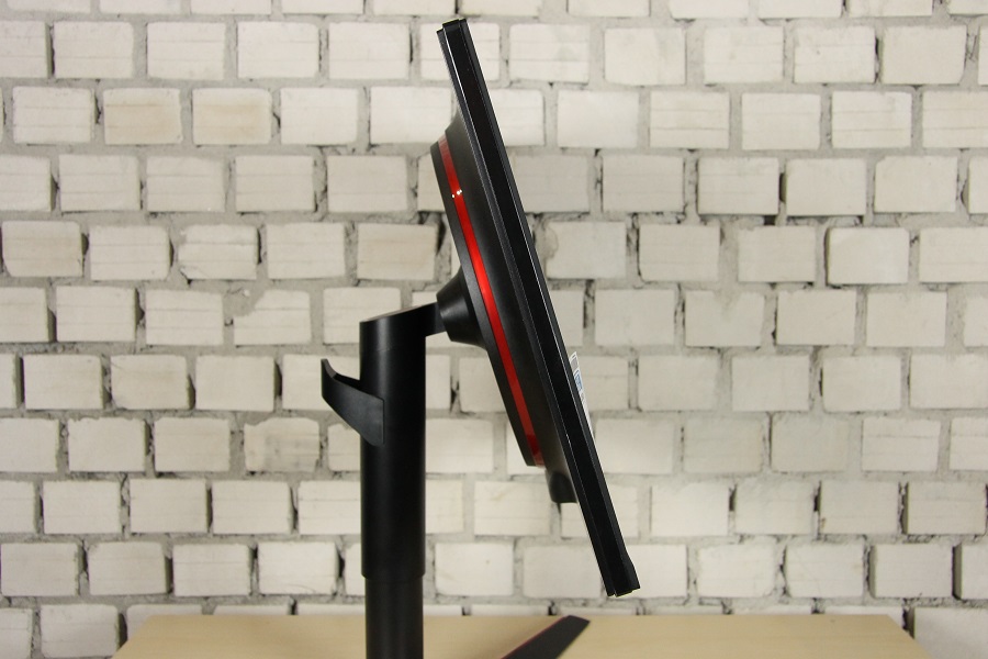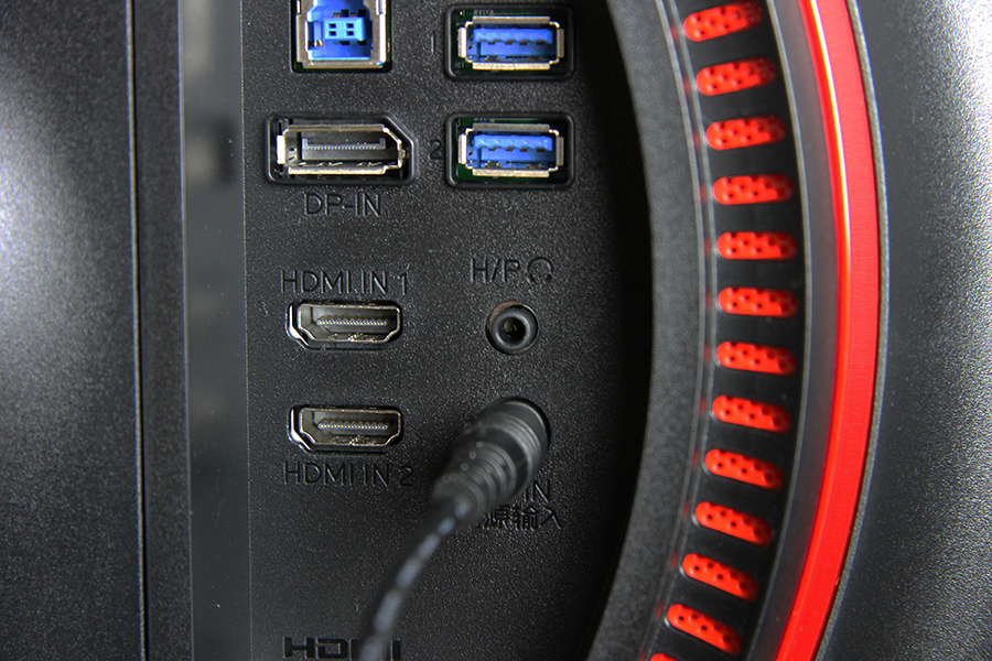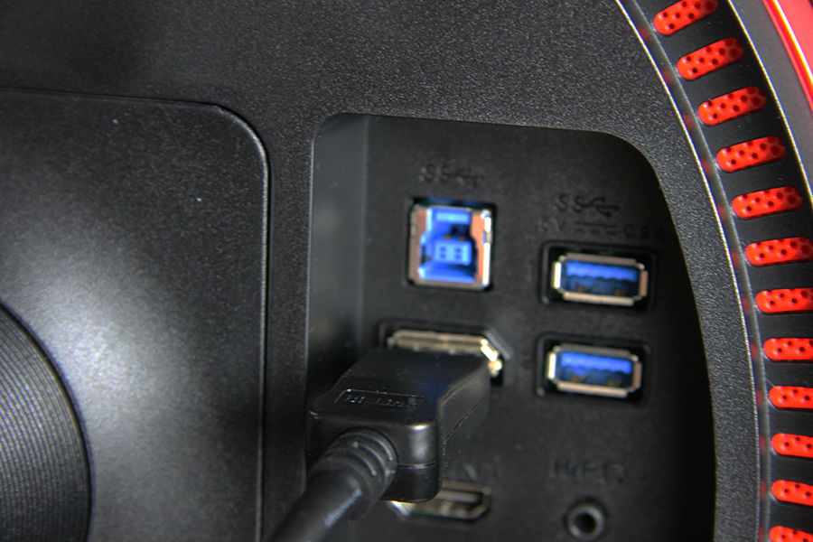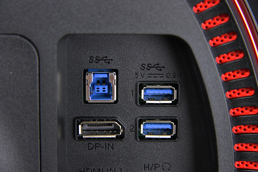 Ook het uiterlijk van het scherm ziet wat mij betreft goed uit. De voet heeft een beetje een stoer uiterlijk wat je als gamer toch wel graag ziet op je setup. Het scherm kan verder op alle manieren aangepast worden. Kantelen is mogelijk van -5 tot +30 graden, hij kan hoger of lager gezet worden en hij kan 90 graden draaien zodat het scherm verticaal staat. Echter draaien naar links of rechts is er niet bij. Dan moet de voet mee draaien, toch iets wat jammer is. De randen van het scherm zelf zijn dun maar er zit nog een kleine rand zwart tussen het display en de rand zelf. Niet storend verder maar toch niet zo dun als je in eerste instantie zou denken. Aan de achterkant zien we een rode kant en de aansluitingen van het scherm. 1 x Displaypoort, 2 HDMI, 2 x USB 3.0 A down en een USB 3.0 B up en een hoofdtelefoon aansluiting. Eigenlijk heb je niet meer nodig.