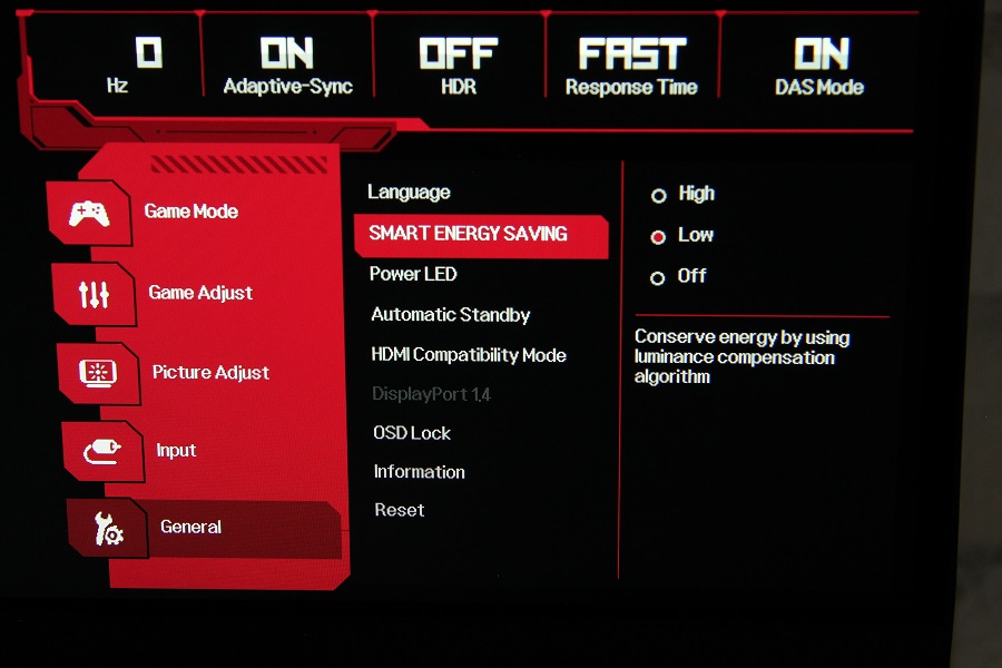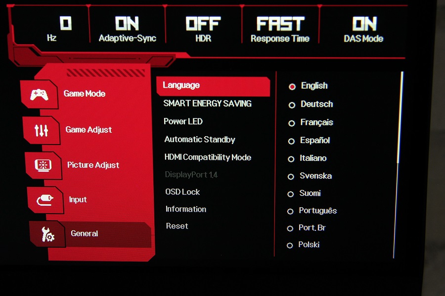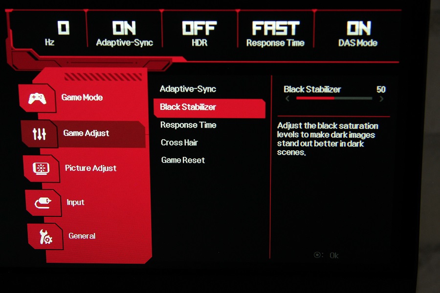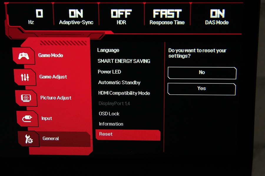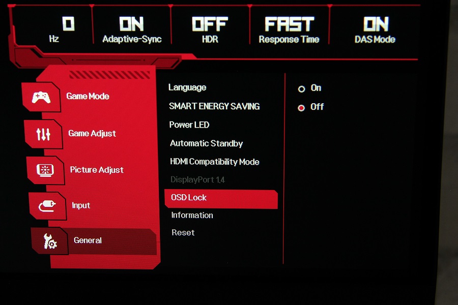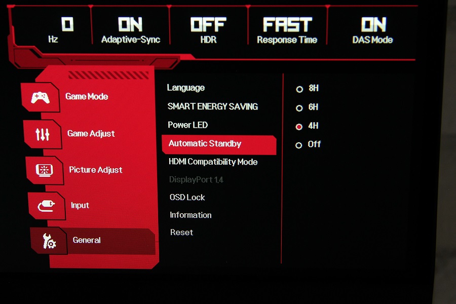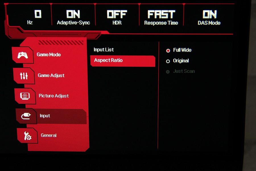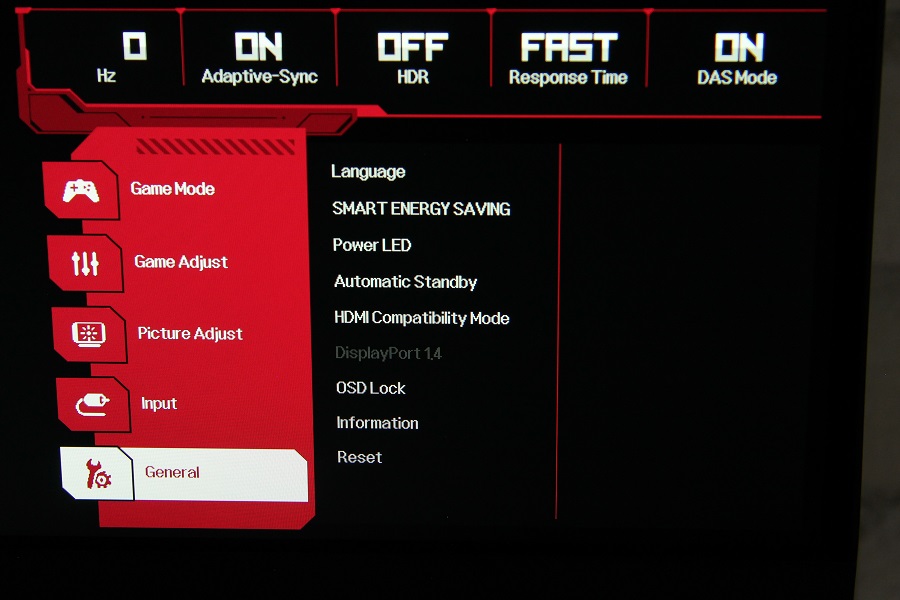 Daarnaast zijn er in het OSD vijf verschillende schermen beschikbaar: Game Mode, Game Adjust, Picture Adjust, Input en General. We gaan even kort door de schermen heen die beschikbaar zijn.