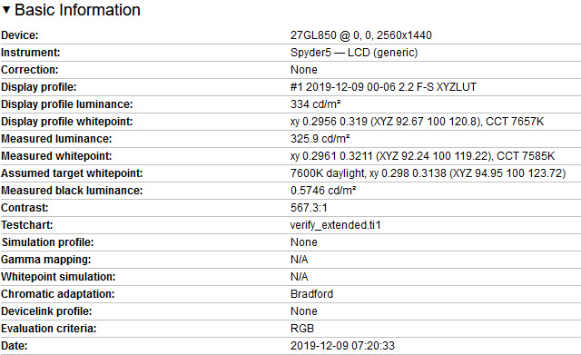 Na de hele meting wordt er een rapport gemaakt van de meting. Daar is bijvoorbeeld de helderheid terug te vinden en de gemeten temperatuur van het scherm. Daarna volgen een aantal grafieken met de resultaten van de metingen.