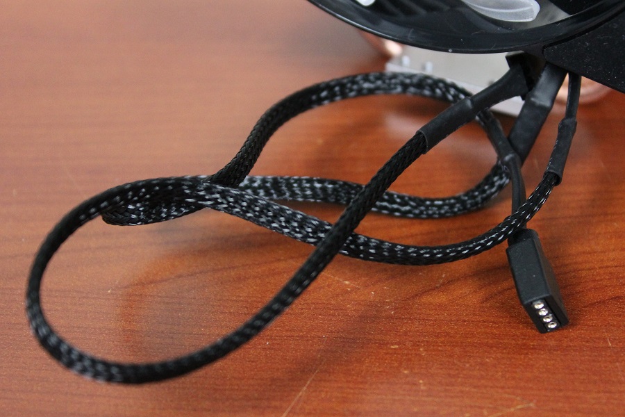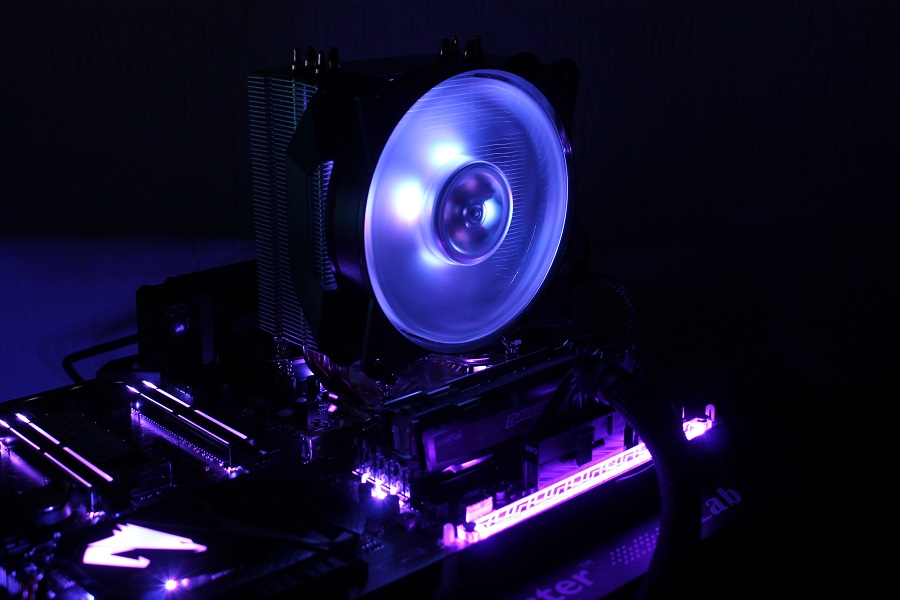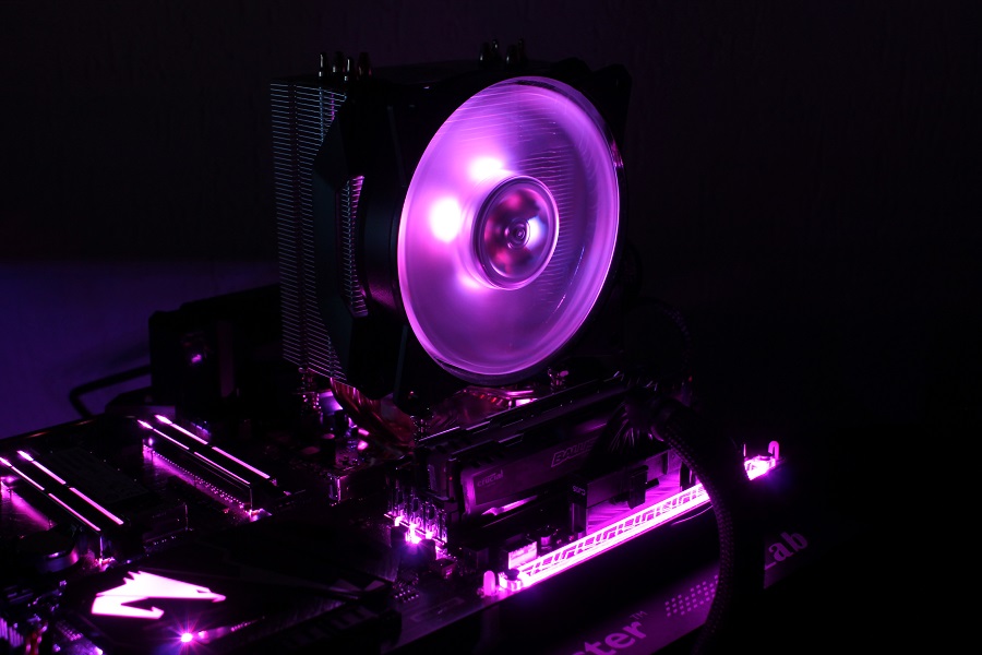 Uiteraard mag RGB niet ontbreken op een koeler. Steeds meer fabrikanten doen het en Cooler Master kan daarom niet achter blijven. De ventilator is voorzien van een 4-pins RGB aansluiting die goed is voor 16,7 miljoen kleuren. Deze kleuren kunnen aangepast worden via de header op het moederbord maar mocht deze niet aanwezig zijn, geen probleem. Cooler Master levert een RGB controller mee zodat alsnog kleuren en effecten ingesteld kunnen worden.