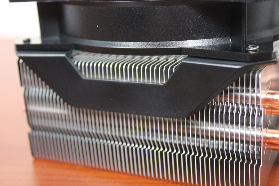 Wat een handigheid is bij deze koeler is de manier waarop de ventilatoren vastgezet worden aan de koeler. Dit gebeurt niet met metalen ijzertjes maar met een plastic klikmechanisme. Hiermee kan de ventilator makkelijk op het blok geklikt worden. Er worden bovendien twee extra brackets geleverd om een tweede ventilator aan de andere kant op het blok te zetten. Lekker makkelijk.