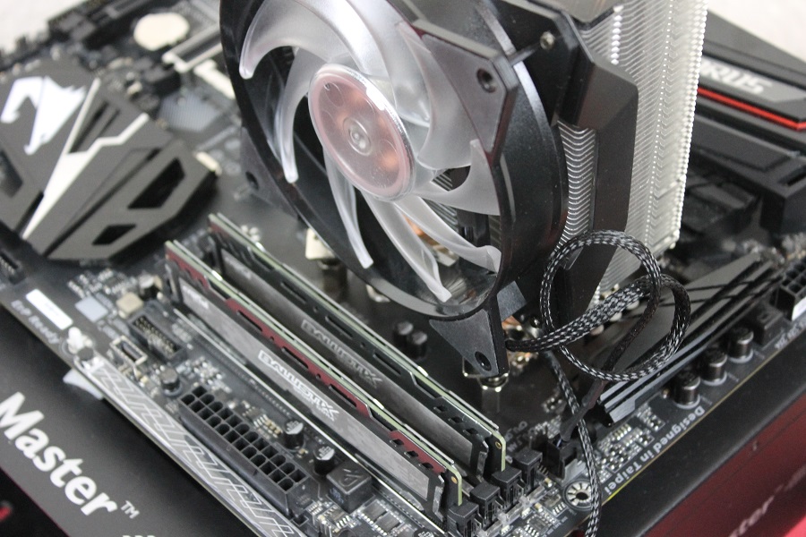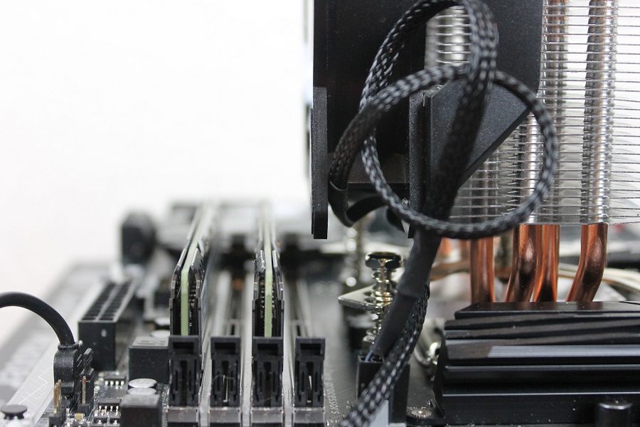 Het nadeel van deze koeler is, zoals met veel koelers, dat je een geheugenslot verliest, ook als je gebruik maakt van Low Profile geheugen. In principe kan het net maar het geheugen wordt bijna uit het slot gedrukt, niet iets wat je graag ziet. De RGB van de ventilator komt mooi tot uiting en kan bediend worden via de meegeleverde controller of de software van het moederbord. Dit is zeker een pluspunt: er hoeft geen eigen software geïnstalleerd te worden.