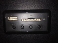Naast de SD kaart zit een klein ledje dat door middel van verschillende kleuren aangeeft welke bron er geselecteerd is. Bij het aanzetten is dat altijd AUX/audio in. Onder de Audio input plug zit overigens nog een groene led die brand als hij aanstaat.