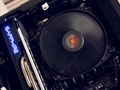 Bequiet Dark Rock TF (rated voor 220 Watt TDP). De behuizing heeft rondom een speciale sleuvenstructuur, welke dubbele dienst doet als verluchting en schroefgaten. Hier kun je dus letterlijk alle "schroefbare" onderdelen in vastzetten.