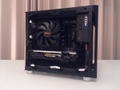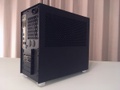 De afwerking mag er ook zijn: de behuizing is gebouwd uit plaatstaal (frame) en aluminium (panelen) met een poedercoating, maar is uiteindelijk lichter dan mijn Antec NSK-1380. Dit komt omdat het plaatstaal dunner is (maar even sterk). Het frontpaneel is volledig blank, en bovenop is er een minimalistisch I/O paneel, met een gepolijste aan/uit knop met ring-LED en twee USB 3 poorten. Elk paneel wordt bevestigd via metalen klik-verbindingen (dus zonder gereedschap), en kan geconfigureerd worden in een afzonderlijke kleur. Voor mijn build heb ik wel alles zwart gekozen, omdat het moet passen in een geheel van andere apparatuur (printer, beeldscherm, toetsenbord, muis, TV, versterker, etc.), en zwart past bij alles ;-). Nu kun je ook kiezen voor verchroomde voeten en zelfs een verchroomde handgreep (voor de LAN-party fanaten), dus zo er is altijd ruimte om een accent te geven aan je build. Je kunt ook kiezen voor alternatieve zijpanelen, waarbij de standaard ventilatiegaten zijn vervangen door een acryl kijkvenster, een combinatie van ventilatie en acrylvenster, of juist een volledig dicht paneel.