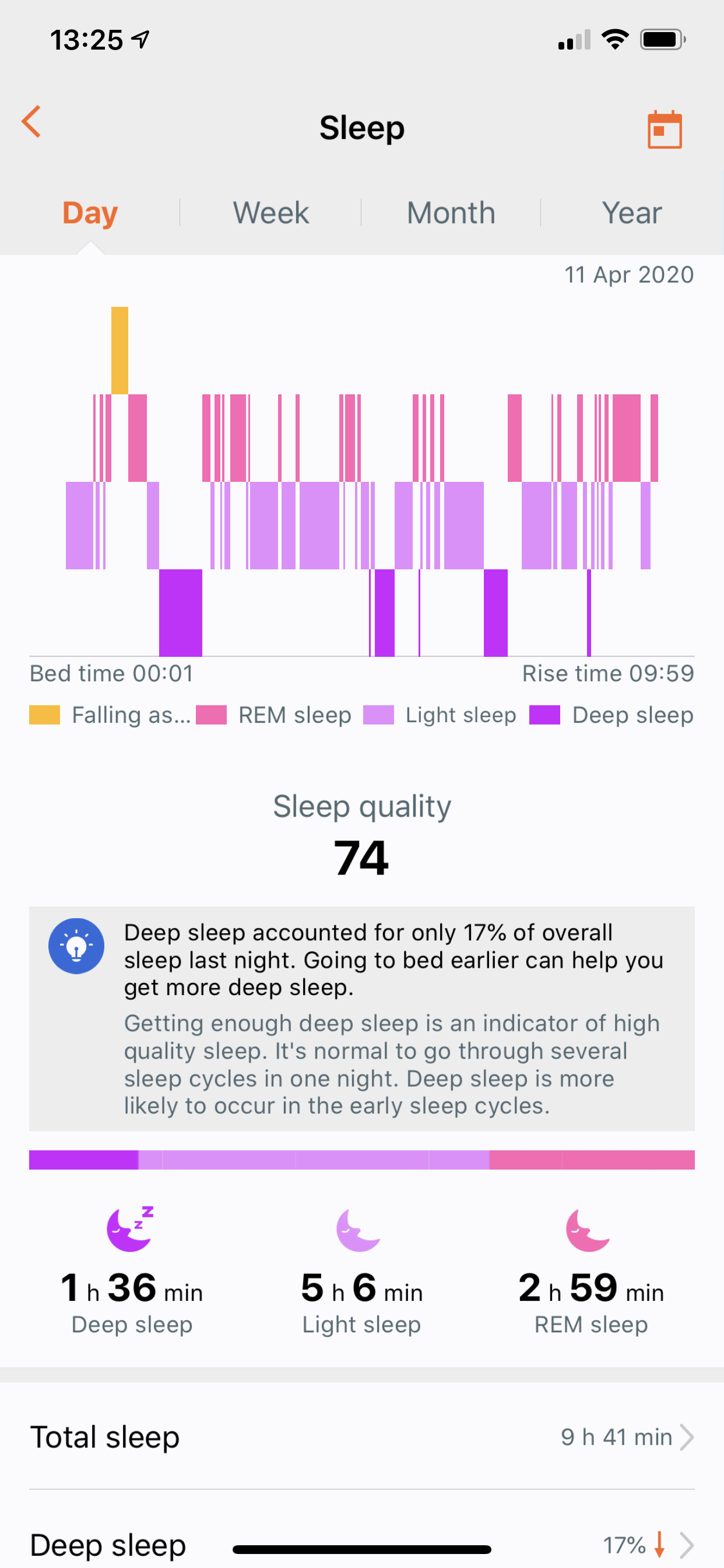 Dit vind ik wel een toffe feature, de MagicWatch 2 herkent wanneer je in slaap gevallen bent, en probeert je slaap te analyseren. Hij laat drie verschillende categorieën zien, ‘Deep sleep’, ‘Light sleep’, en ‘REM sleep’. Van de drie houdt hij bij hoe lang je van ieder hebt gehad, en geeft je slaap ook een score. Ook ziet hij of je wakker bent geweest, alhoewel dat niet erg accuraat is als je redelijk stil blijft liggen. Bij ieder categorie heb je ook een uitgebreide uitleg in de app, met ook een hoop tips hoe je je slaap zou kunnen verbeteren.