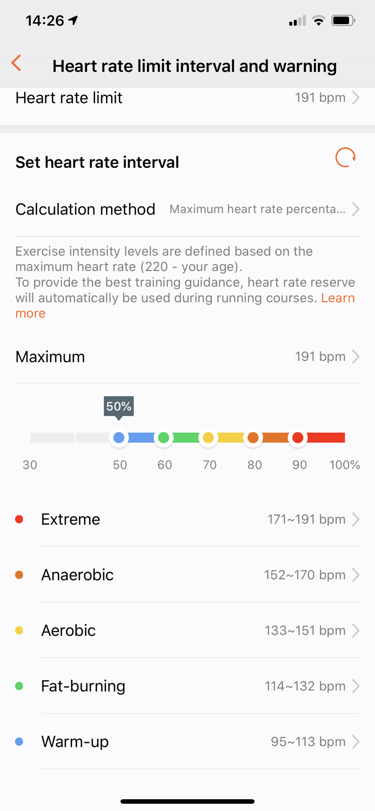 Zoals vermeld bij hardware, heeft de MagicWatch 2 een hartslagsensor die de hele dag door je hartslag in de gaten houdt. Je kunt ook instellen dat hij je een notificatie moet geven als je hartslag boven een bepaalde waarde gaat. Ook kun je instellen wat de intervallen zijn voor je hartslag: ‘Warm-up’, ‘Fat-burning’, ‘Aerobic’, ‘Anaerobic’, en ‘Extreme’. Standaard zijn deze al voor je berekend, maar mocht je ze willen wijzigen dan kan dat.